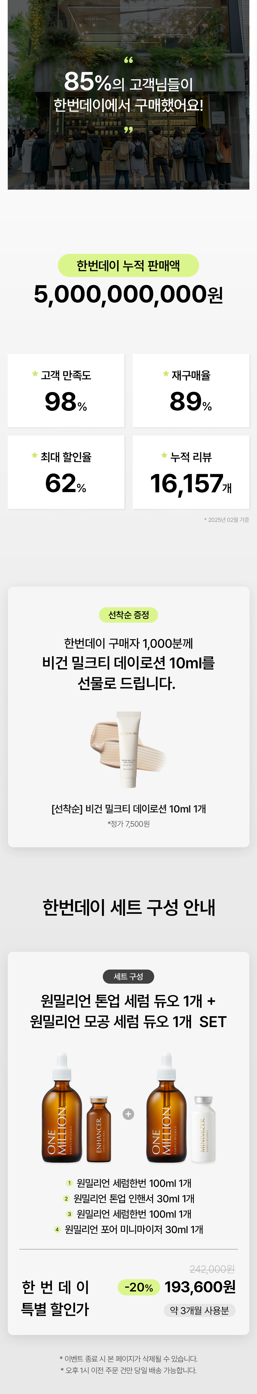 1. 원밀리언 톤업 세럼듀오 + 원밀리언 모공 세럼듀오