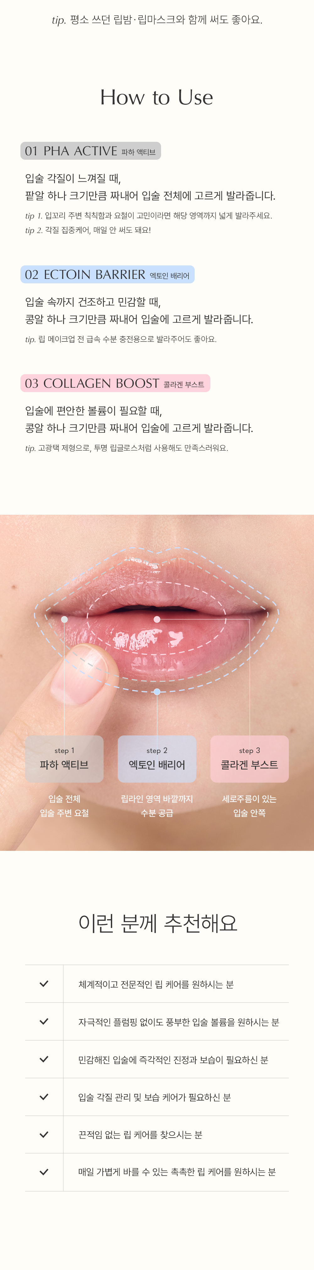 입술 각질과 주변 요철까지 케어합니다.