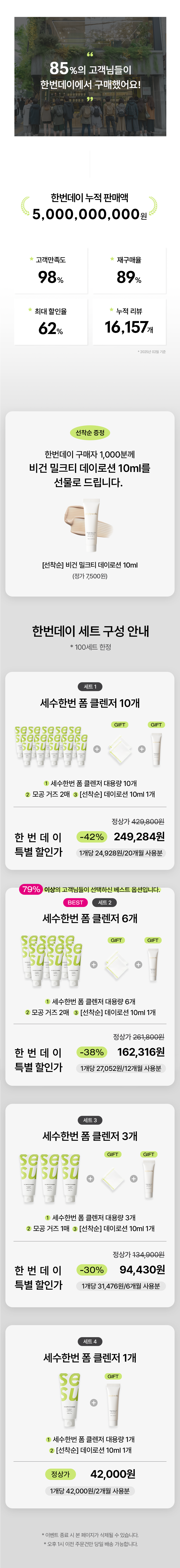 1회 세안비용 250원으로 합리적인 구성입니다. (10SET 기준)