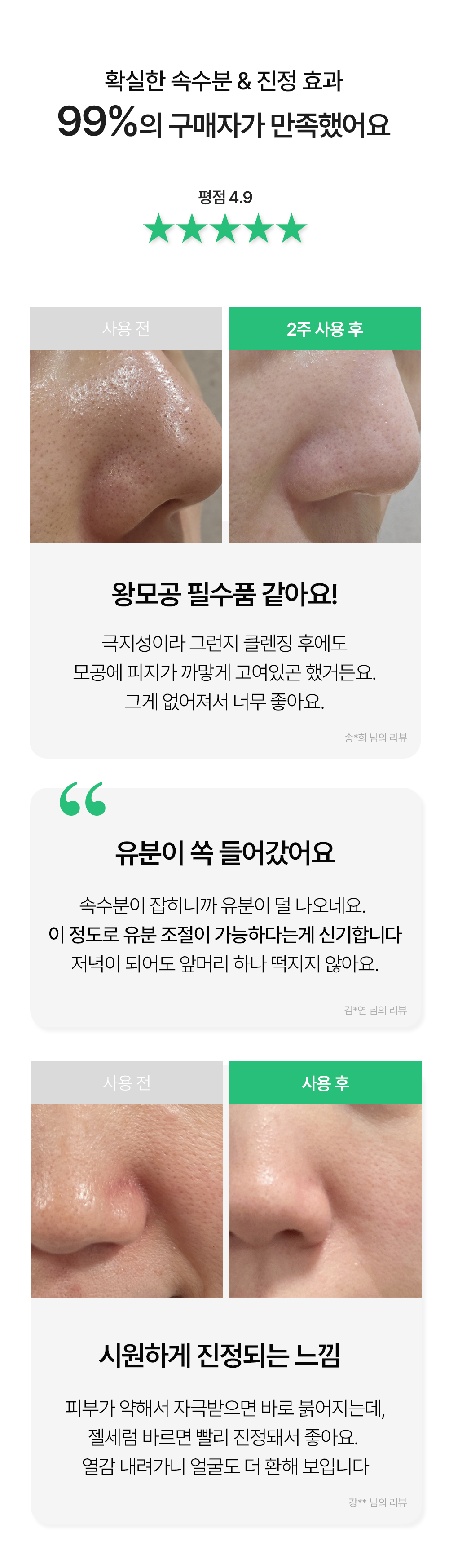 ✔ 따가움 없이 편안한 모공케어